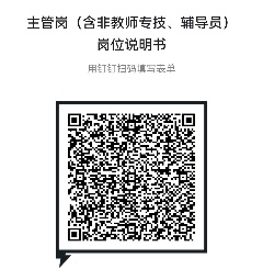 根据《八戒影视网 2023-2026年度“三定”方案》(浙商大党〔2023〕3号)核定的主管岗岗位数,请各学院(部门)制定主管岗(含非教师专技、辅导员)各岗位的说明书,经主要领导审核后于2023年2月22日(周三)上午10点前在钉钉填写完毕并提交(扫描下图二维码),纸质版报送到人事处(综合楼1031室)。