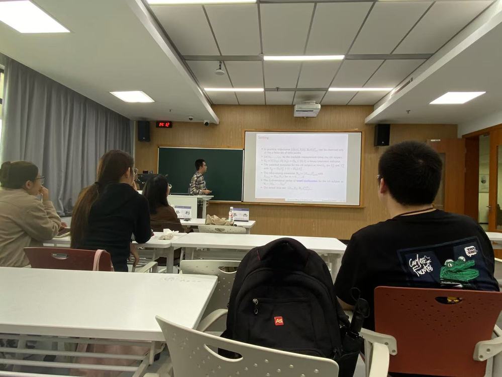 在本次讲座中,李博士首先提到了探究变量之间因果关系的重要性。目前已有的因果推理文献研究主要为两个方面:一维数据、二维数据。重复观察的函数数据经常出现在各种应用中,其中功能数据中治疗设计会随着时间的推移而发生变化,这样的治疗效果是一个时变函数。然而,大多数基于观测数据的治疗效果估计方法都依赖于可忽略性假设,即在给定可观测协变量的情况下,治疗分配与潜在结果无关。当涉及未观察到的潜在协变量时,可能会违反这一假设。基于以上这些问题,李博士提出了一种针对功能数据的无偏治疗效果估计的新方法,这方法含有未观察到的潜在协变量。随后,李博士进一步指出可以通过蒙特卡洛EM算法的联合似然方法来解决这个具有挑战性的问题。对此,李博士证明了这个方法在估计个体的异质性治疗效果和平均治疗效果具有灵活性,为制定治疗决策提供了可靠的推理工具。李博士说该方法也可以应用于不规则和稀疏的数据。当应用于研究睡眠质量对心率变异性的动态影响时,该方法带来了有意义的发现。