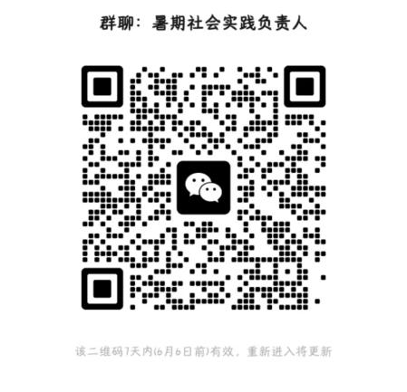 (一)请各实践团队负责人于6月15日20:00前进入暑期社会实践管理系统(//szgqt.bajieysw.net/),申报填写团队相关信息(具体操作流程见附件1)并在实践时间开始之日起,按时进行安全签到。另外,为方便后续事项通知,请各社会实践团队负责人扫码加入微信群。