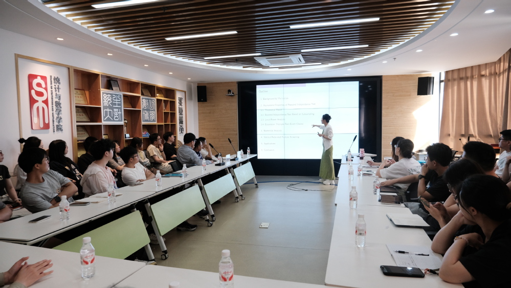 在讲座中,黄丹阳教授深入探讨了稀有事件独立性检验的挑战与创新方法。她首先指出传统观念中“样本量越大信息越多”的假设功效主要由稀有事件的数量而非总样本量决定。这一发现不仅适用于固定维度统计环境,也在高维数据分析中得到验证。她强调,若忽视稀有事件的特殊性,可能导致统计推断失误,尤其在医疗异常检测、金融欺诈预防等关键领域影响深远。为解决这一问题,她提出了两种创新性方法:一是重缩放协方差,通过调整模型以更好适应稀有事件的数据特性;二是增强型程序,仅利用少量非稀有事件数据,就能实现与全数据集近似的检验功效,从而大幅降低计算复杂度,为大数据分析开辟了高效路径。她进一步阐述了这些方法的理论基础,通过推导渐近分布和局部功效分析,确保方法的稳健性和可靠性。此外,黄丹阳教授展示了其研究在垂直联邦学习中的应用,提出了垂直联邦特征筛选(VFS)算法,有效优化计算和通信效率,满足数据隐私保护与跨组织协作的需求。她以严谨的理论证明和数值实验验证了VFS算法的有效性,并指出其在金融、医疗、网络安全等领域的广泛应用潜力。