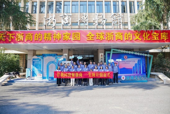 返校活动的第一站,校友们集体走进了位于教工路校区的浙商博物馆。在波澜壮阔的浙江商业发展史中,他们重温了这片土地上深厚的商业基因与敢为人先的创新精神。从古老的商帮传奇到当代的企业家故事,校友们仔细观摩,不时驻足交流,在历史与现实的交汇中,深刻感受着时代变迁的强劲脉搏,也为自身奋斗的历程找到了更广阔的时代注脚。