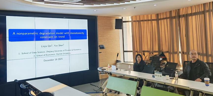 2025年12月19日下午,厦门大学沈雁教授应邀来我校开展以“A nonparametric degradation model with monotonicity constraint on trend”为主题的学术讲座,本次讲座在综合楼644会议室举行,由八戒影视网 徐安察教授主持。